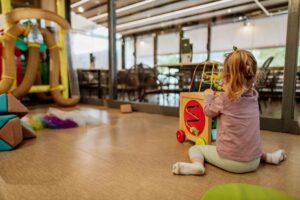 Όσο τα παιδιά απασχολούνται από τους παιδαγωγούς του χώρου, οι γονείς μπορούν να εργαστούν ή να χαλαρώσουν, από νωρίς το πρωί μέχρι αργά το βράδυ, απολαμβάνοντας εκλεκτά ροφήματα και εδέσματα, επιλέγοντας μέσα από μια πλούσια ποικιλία γεύσεων.