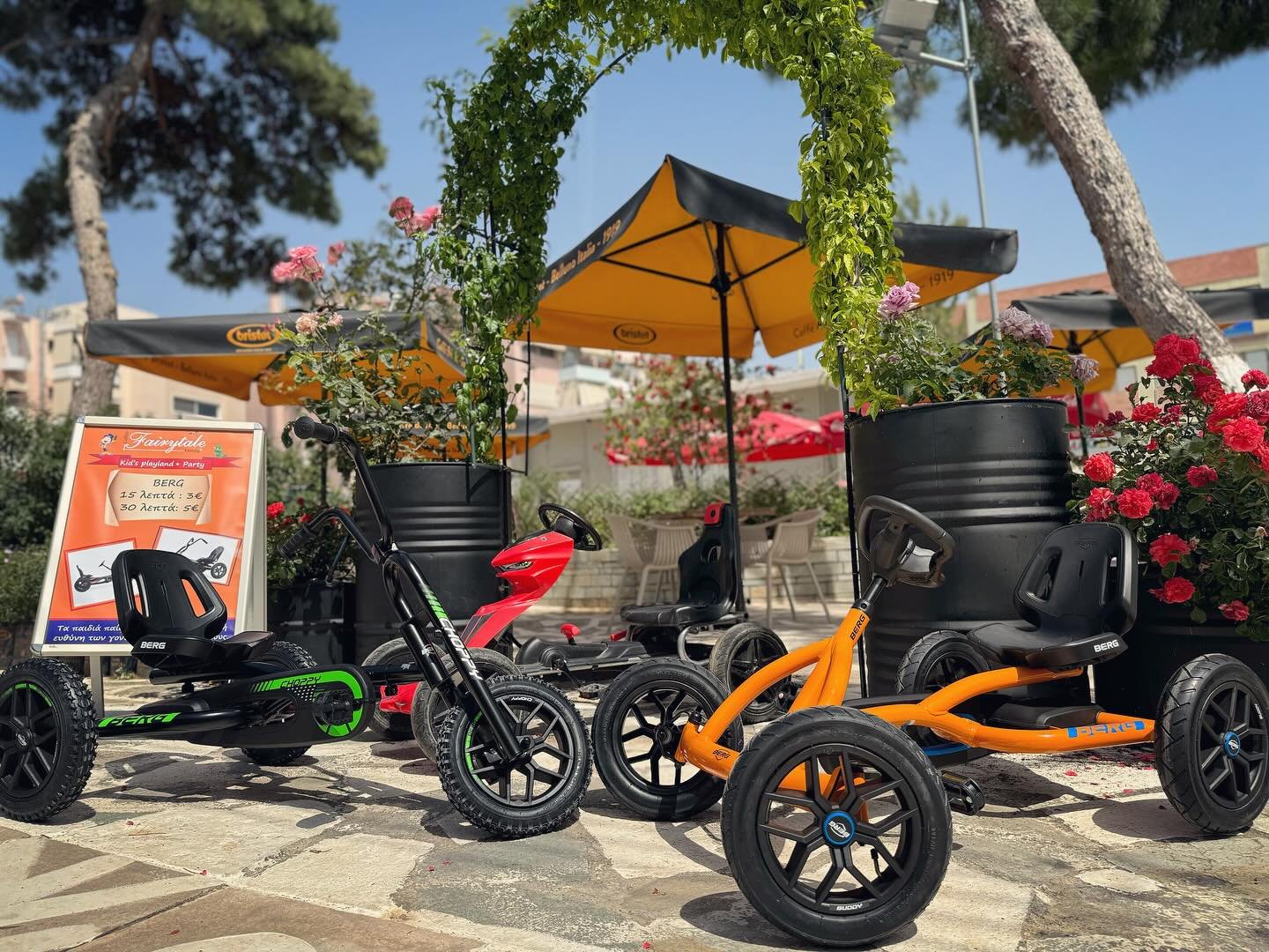 Τους θερινούς μήνες θα παίξουν στη πλατεία με τα ποδοκίνητα berg ποδήλατα με την επίβλεψη των γονιών.