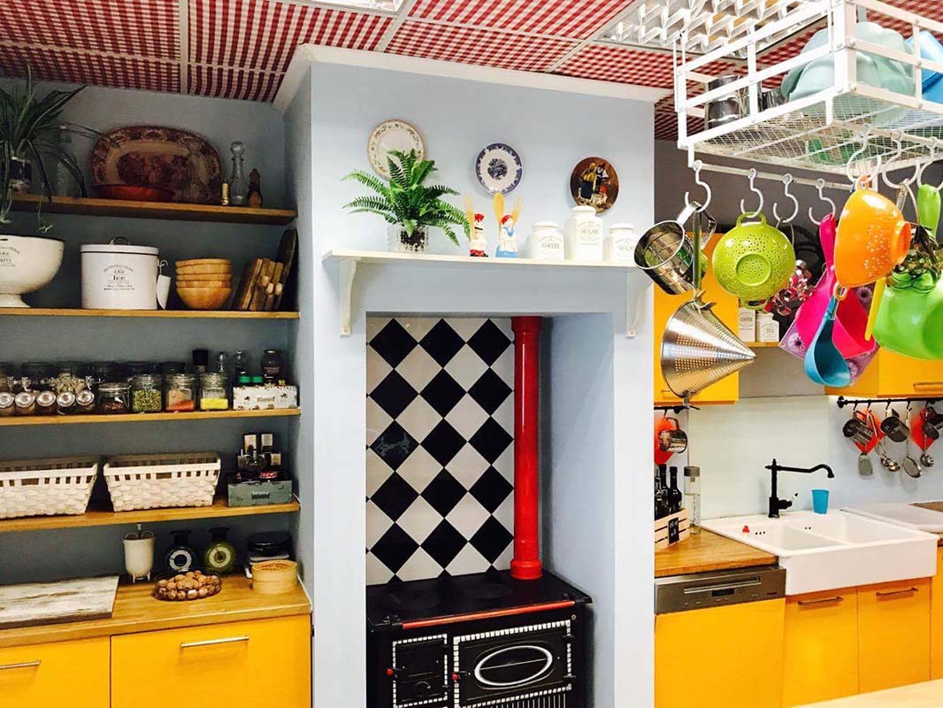 Για να αισθάνονται άνετα στη κουζίνα, είναι διαμορφωμένη στο ύψος τους και στις ανάγκες τους. Ο εξοπλισμός που χρησιμοποιούν είναι κατάλληλος για παιδικά χεράκια, ώστε να μαγειρεύουν με ασφάλεια.