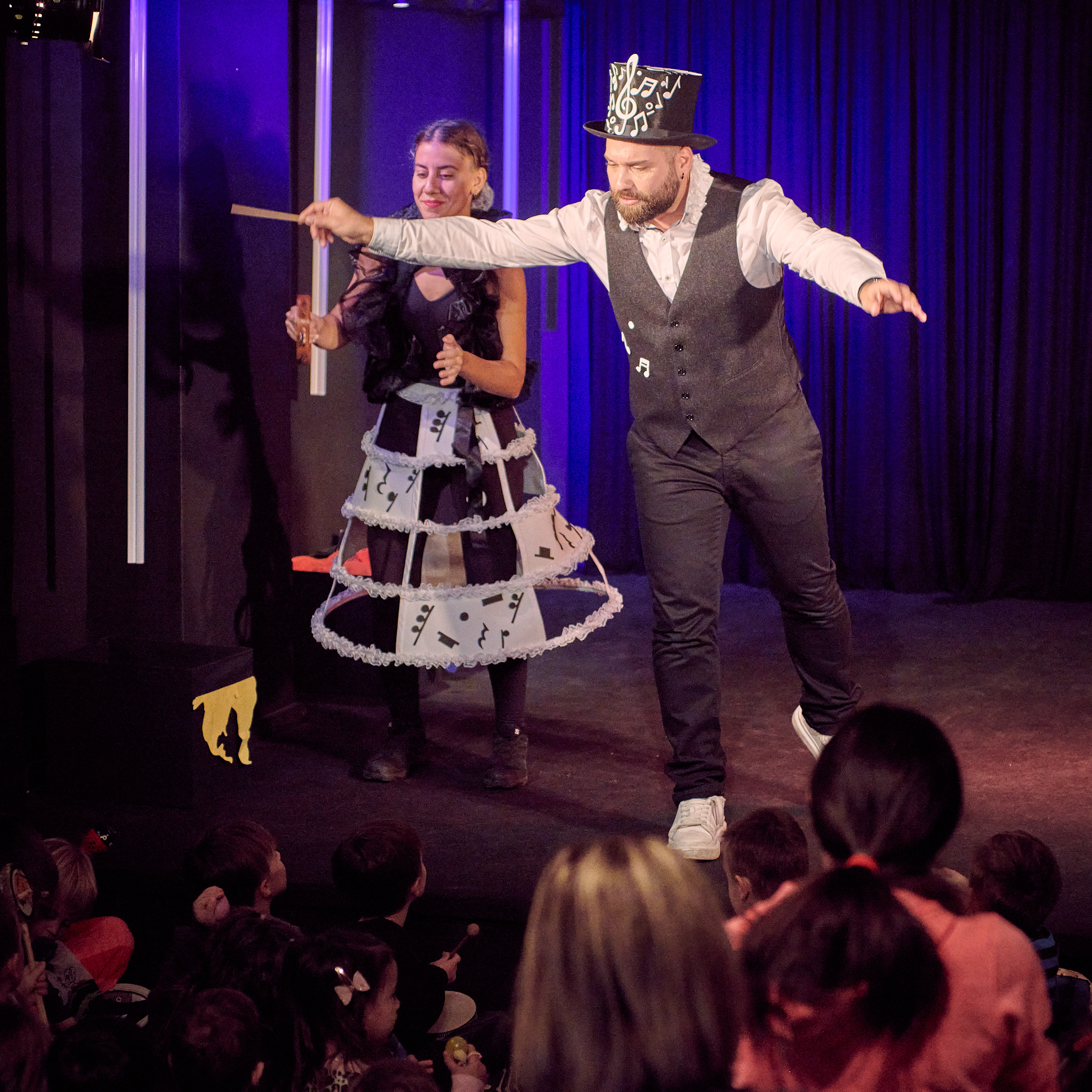 Μια αληθινά διαδραστική μουσικοθεατρική παράσταση με ζωντανό τραγούδι και live πιάνο, σχεδιασμένη ειδικά για παιδιά 2.5 έως 6 ετών. Τα παιδιά γνωρίζουν βασικές μουσικές έννοιες — νότες, παύσεις, ρυθμό — παίζοντας μαζί με τους ήρωες. Η παράσταση είναι μουσικο-εκπαιδευτικού χαρακτήρα και ανήκει στο πρότζεκτ miniΝΤΟ της ομάδας Τικ Τακ Ντο.