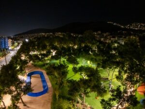 Πρόκειται για έναν χώρο άνω των 10 στρεμμάτων στην Άνω Γλυφάδα που παρέμενε αναξιοποίητος ενώ πλέον αποτελεί μια ανάσα δροσιάς στον αστικό ιστό, καθώς στο υπάρχον πράσινο προστέθηκαν χιλιάδες νέα φυτά και μεγάλα δέντρα.