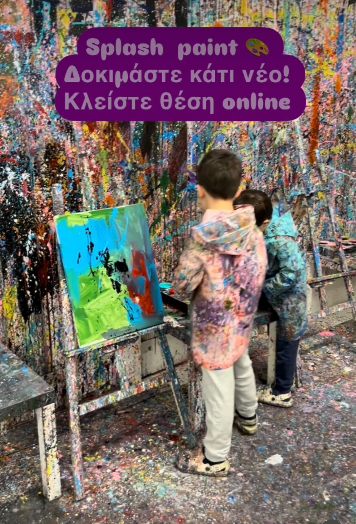 🎨 Splash Painting: Ζωγραφίζετε καμβά πιτσιλίζοντας χρώματα με πινέλα, σε μια ελεύθερη, εκφραστική εμπειρία τέχνης χωρίς κανόνες.