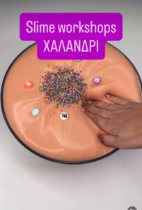 🟢 Slime Making: Δημιουργείτε το δικό σας slime επιλέγοντας χρώματα, glitter και υλικά, σε μια διαδικασία που ενθουσιάζει τα παιδιά και ξυπνά το παιδί μέσα στους μεγάλους.