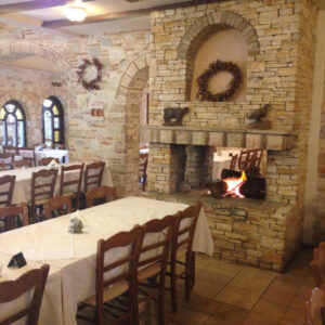 Μπορείτε να απολαύσετε το φαγητό σας τόσο στην εσωτερική αίθουσα που είναι παραδοσιακά διαμορφωμένη με πέτρα και ξύλο, όσο και στην καταπράσινη αυλή τους τις πιο ζεστές μέρες.