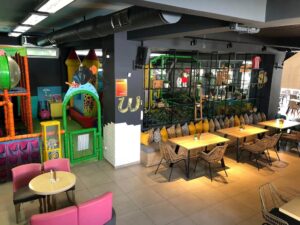 Τέλος, ο χώρος αναλαμβάνει τη διοργάνωση εκδηλώσεων, όπως παιδικό πάρτι και μάλιστα διαθέτει μια υπέροχη αίθουσα με δικό της παιδότοπο και μπαρ για αποκλειστική χρήση.